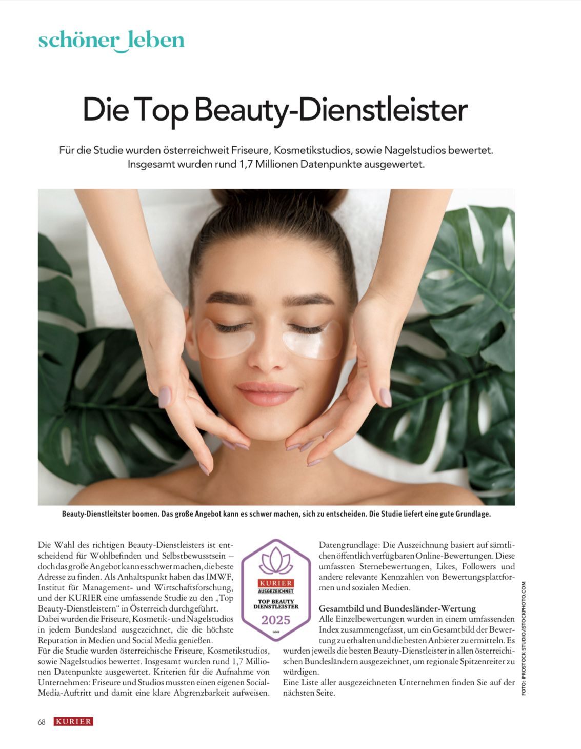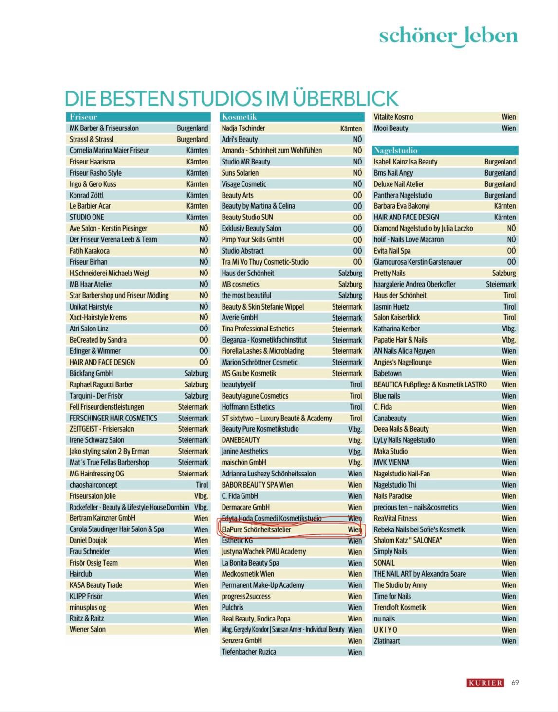Wir freuen uns sehr: Der Kurier hat ElaPure als eines der Top Beauty-Studios Österreichs 2025 ausgezeichnet.